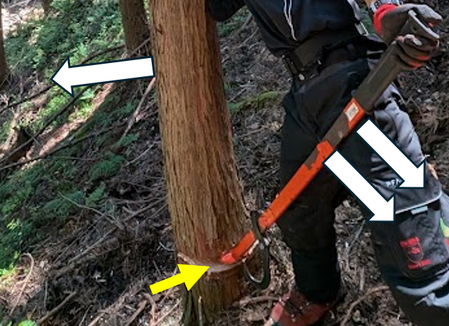 フェリングレバーを追い口に入れ込み、何度も「てこの原理」で圧をかける