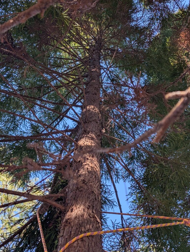 スローラインを使って、ロープに切り替えたが結局木の下の方で縛ることしかできなかった