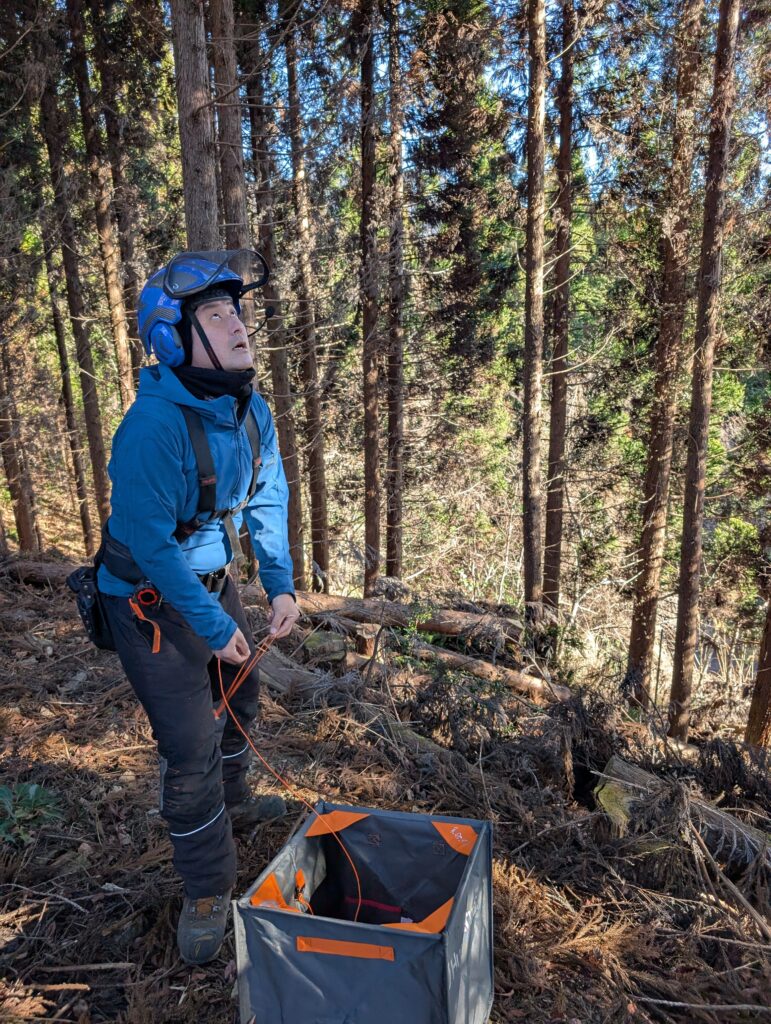 杉の枝が多いうえ、絶対にかかり木になる