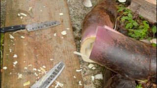 クヌギの木やコナラの木にドリルで穴をあけてくれて