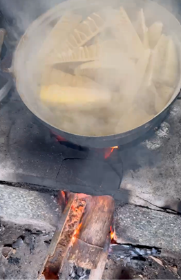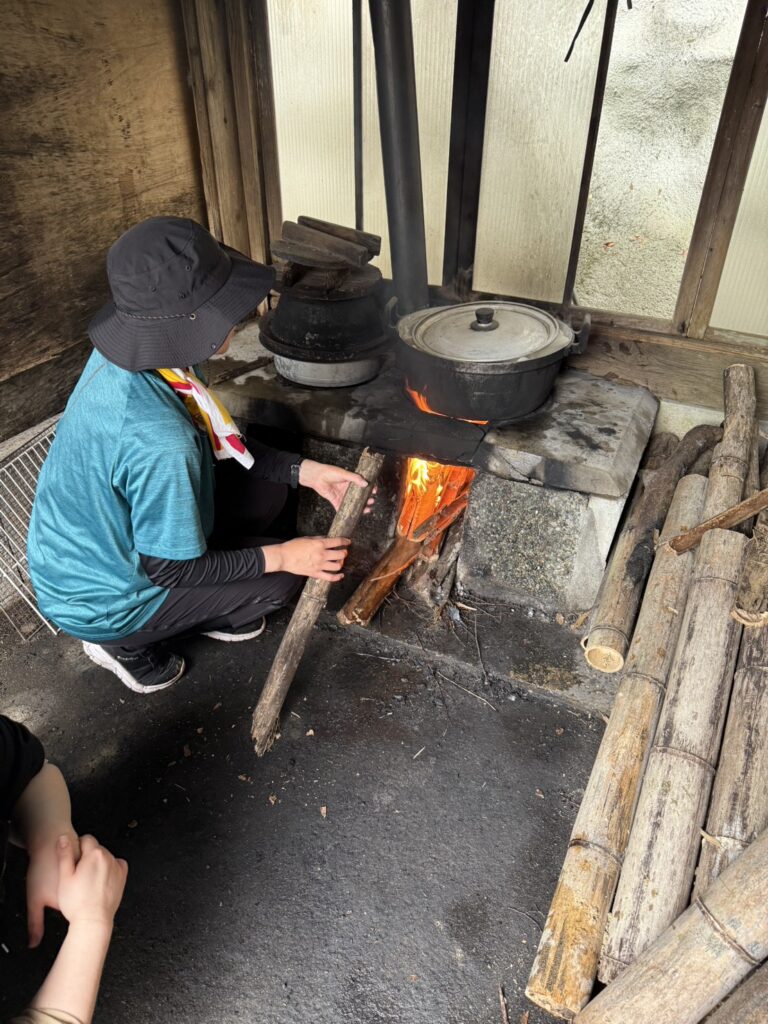 クワで掘り起こしかまどでゆがく作業を教えていただきました。